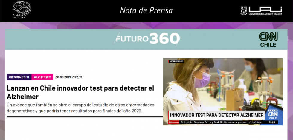 Nota Futuro 360 – Lanzan en Chile innovador test para detectar el Alzheimer – 30 Mayo 2022Actividades